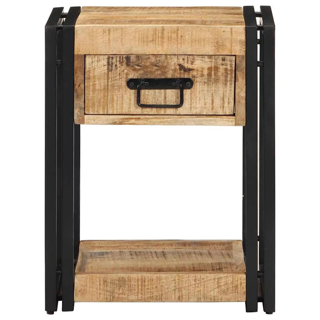 Ez az elegáns kialakítású fa éjjeliszekrény otthona időtálló kiegészítője lesz. Robusztus és stabil: A tömör mangófa egy erős, trópusi keményfa, mely rendkívüli tartóssága és szilárdsága miatt különösen kedvelt a bútorgyártásban. A fa gyönyörű erezetének köszönhetően minden darab kissé különbözik a többitől. Bőséges tárolóhely: Az éjjeliszekrény bőséges tárolóhelyet biztosít a magazinok, könyvek, poharak és más, az alváshoz szükséges dolgok számára, így azok rendezettek és elérhető közelségben maradnak.Stabil és tartós váz: A vas erős, stabil, és tartós, így ideális választás sokféle használathoz, a bútorgyártástól az építkezésig. Stabil felső: Az éjjeliszekrény stabil teteje tökéletesen alkalmas asztali lámpák, ébresztőórák, könyvek, képkeretek, kis cserepes növények, dekorációk vagy más alapvető dolgok elhelyezésére. Praktikus fogantyú: A szekrény fogantyúja kényelmes fogást biztosít, így könnyedén nyithatja és zárhatja a szekrényt, miközben extra szépséget ad hozzá. Figyelem:A felborulás elkerülése érdekében ezt a terméket a mellékelt fali rögzítőeszközzel kell használni.