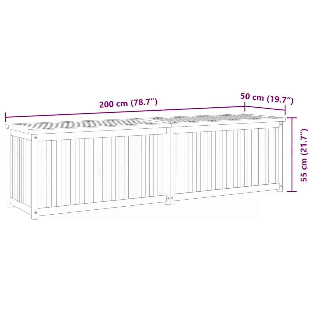 A könnyen nyitható fedéllel rendelkező kerti láda rengeteg helyet biztosít a szerszámok és egyéb használati tárgyak tárolására. Prémium minőségű anyag: A tömör tíkfa egy gyönyörű, természetes anyag. A fa természetesen, illetve kemencében volt szárítva, majd finomra lett csiszolva az elegáns megjelenés érdekében. A tíkfa rendkívül erős, és ellenáll az időjárás viszontagságainak.Bőséges hely: A nagy tárolóhely rengeteg helyet biztosít ahhoz, hogy rendszerezetten tároljon benne párnákat, kerti eszközöket, és más kiegészítőket.Hasznos kiegészítők: Belső polietilén zsákkal rendelkezik, így tárolóláda tartalma biztosan száraz marad.Alkalmas helyek: Ez a kerti láda ideális kertbe, fészerbe és garázsba. Megjegyzés:Kerti bútora élettartamának meghosszabbítása érdekében javasoljuk, hogy védje vízálló takaróval.