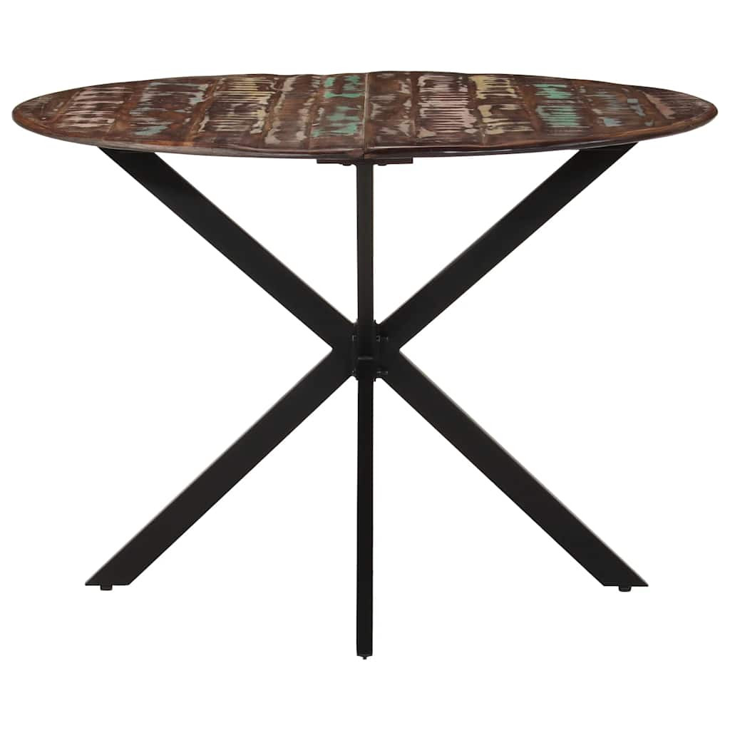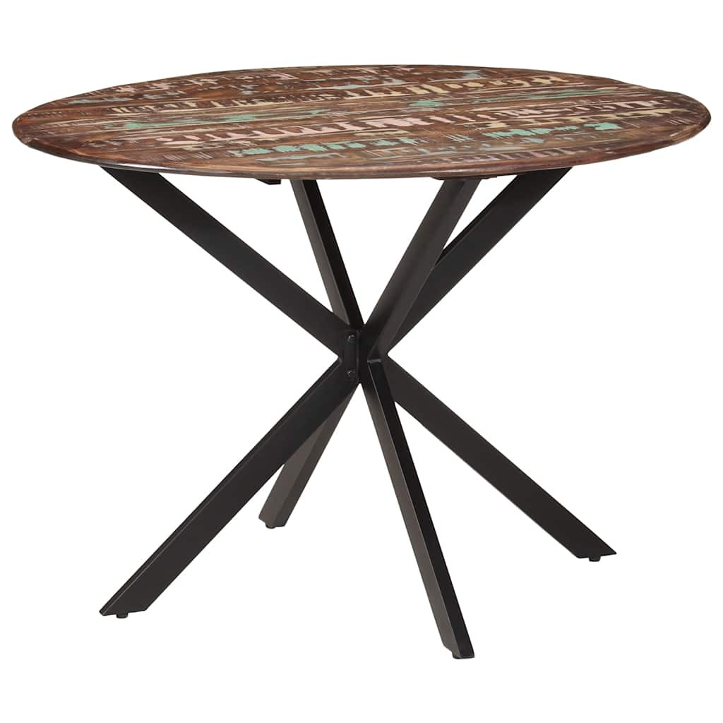 Ez a divatos fa étkezőasztal konyhája vagy étkezője jellegzetes kiegészítője lesz. Tömör újrahasznosított fa: A tömör újrahasznosított fa újrafelhasznált faanyagokból áll, például tíkfából, mangófából, fenyőfából és bükkfából. Ezeket a faanyagokat régi épületekből, például gyárakból, fészerekből és hajókból hasznosítják újra. Ez rendkívül környezetbarát megoldássá teszi a bútorgyártásban. Mivel minden darab kézzel készült és egyedi, a színek darabonként változhatnak. Találhat kék, zöld, és esetenként narancssárga, piros és rózsaszín árnyalatokat.Masszív asztallap: A masszív asztallap tökéletesen alkalmas italok, vázák és egyéb dísztárgyak elhelyezésére.Stabil váz: Az erős porszórt acélváz erős szerkezetet ás stabilitást biztosít az étkezőasztalnak. Megjegyzés:Az erezet darabonként változik, így minden bútordarab egyedi; a kiszállítás véletlenszerűen történik.