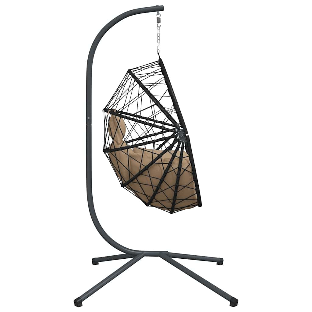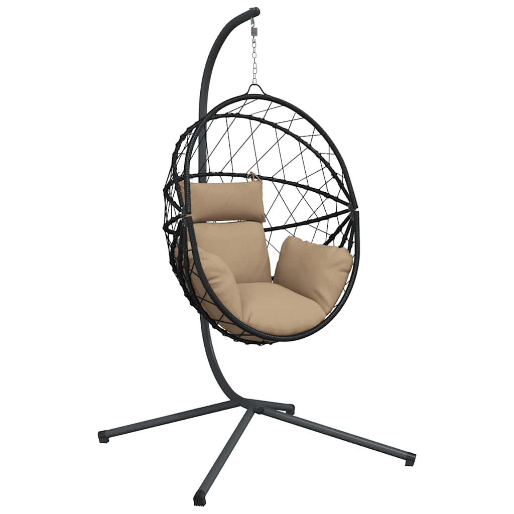 tópszínű rattan és acél függő kagylószék állvánnyal