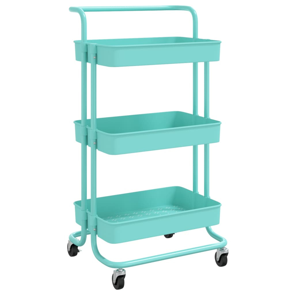 türkiz 3 szintes vas és ABS konyhai kerekes kocsi 42x35x85 cm
