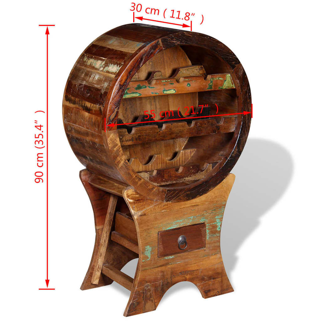 Ez az antik stílusú fa bortároló tökéletes választás borkedvelők számára. Ez az elegáns bortároló állvány antik bájt csempész a konyhájába, étkezőjébe vagy nappalijába. 10 palacknak elegendő helyet biztosít és még egy fiókkal is fel lett szerelve, melyben az apró kiegészítők tárolhatók, így ezen a borállványon minden olyasmi tárolható, amire szüksége lehet egy pohár bor felszolgálásakor. Újrahasznosított fából készült, így ez a bortartó állvány stabil, strapabíró és gyönyörű, és olyan különböző fa típusok jellegzetességeit egyesíti magában, mint például a tíkfa, mangófa, akácfa, újrahasznosított fa, keményfa, és így tovább. A bútordarab minden egyes példánya egyedi, kissé eltér a többitől. A kopás és a fa erezetbeli eltérésének jelei minden egyes darabnak egyedi külsőt kölcsönöznek és hozzájárulnak az antik stílushoz. Ez a bortartó állvány kézzel készült. A folyamat minden egyes lépés a lehető legnagyobb gonddal lett végrehajtva legyen szó csiszolásról, festésről vagy lakkozásról. Fontos figyelmeztetés: A színek darabról-darabra változhatnak, így mindegyik bortartó állványunk egyedi. A szállítás véletlenszerűen történik.