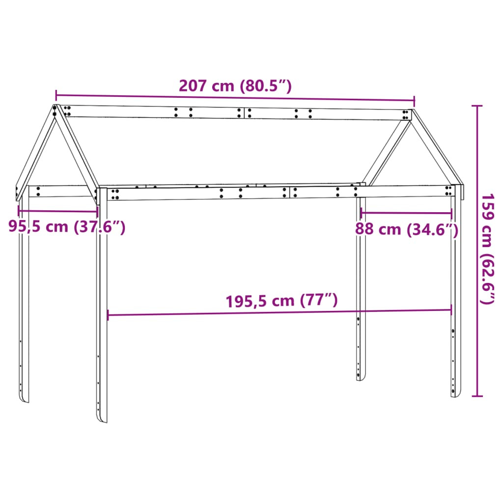 Varázsolja a gyerekágyat beltéri játszótérré ezzel a gyerekágytetővel, amely élénkebbé és szórakoztatóvá teszi az alvásidőt. Stabil és hosszú élettartamú váz: A tömör fenyőfa erősségéről és tartósságáról ismert. Egyenes erezete és jellegzetes csomói hozzájárulnak rusztikus varázsához.Nagyszerű szórakozás: Ha a tetőt gyermeke ágyával kombinálja, olyan búvóhelyet alakíthat ki, amely rengeteg szórakozást kínál gyermekének. Ez az innovatív kiegészítés nemcsak nagyszerű fókuszpont lesz, hanem csodát és izgalmat is visz a gyerekszobába.Nyitott oldalsó ajtó: A tető nyitott oldalajtóval rendelkezik, így a gyerekek könnyen fel- és felszállhatnak az ágyból. Jó tudni:A szállítmány csak tetőt tartalmaz; az ágyat nem tartalmazza.