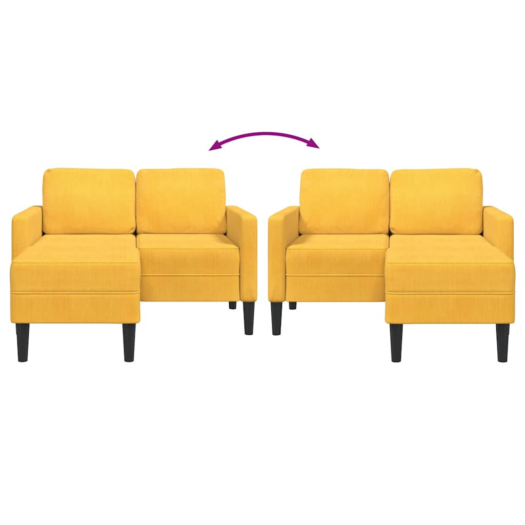 világos sárga vászon 2 üléses kanapé L-alakú kanapéval 125 cm