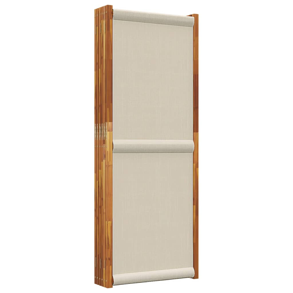 Ez a térelválasztó tökéletes egy szeparált, privát terület vagy rész kialakításához bel-vagy kültéri környezetében. Tartós anyag: A tömör akácfa egy gyönyörű és természetes anyag. Az akácfa egy trópusi keményfa, amely sűrű erezetű, masszív és tartós. Az erős textilén időjárásálló és könnyen tisztítható is.Rugalmas és könnyen összecsukható: Minden válaszfalat horganyzott zsanérok kötnek össze, és bizonyos mértékig a helytakarékosság érdekében igény szerint könnyedén összehajthatóak.Multifunkciós: Ez a szobaparaván dekorációként és térelválasztóként is használható. Tökéletes egy terület leválasztására privát szféra létrehozásához vagy egy extra helyiség kialakításához.