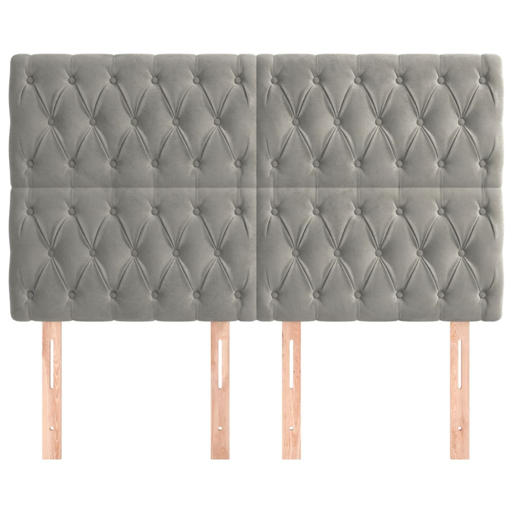 Ez a klasszikus fejtámla stílusos dizájnnal komplett megjelenést kölcsönöz az ágykeretnek, és bármilyen hálószobához illik. Puha bársony: A bársony egy puha, luxus anyag, amelyet sűrű, egyenletesen vágott szálairól ismerhetünk fel, amelyek sima bolyhozásúak. A bársony anyag jellegzetesen puha tapintású, így kellemes tapintású.Masszív és stabil lábak: A fa lábak biztosítják a stabilitást és a stabilitást.Állítható magasság: Az ágy fejtámlájának magassága az Ön igényei szerint állítható.Kiváló tartás: Az ágy fejtámlája kiváló háttámaszt nyújt, miközben az ágyban ül olvasás vagy tévézés közben. Megjegyzés:A szállítmány csak az ágy fejtámláját tartalmazza. Az ágykeret és a matrac nem része a csomagnak. A hozzáillő kereteket és matracokat megtalálja üzletünkben.Minden termékhez tartozik egy összeszerelési útmutató a dobozban az egyszerű összeszerelés érdekében.