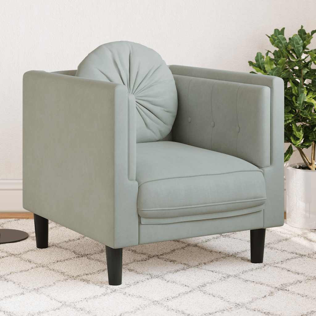 Ez az kanapészék kiváló hely a beszélgetéshez, olvasáshoz, tévézéshez vagy akár pihenéshez. Célja, hogy otthona fókuszpontja lesz. Puha bársony: A bársony egy puha, fényűző anyag, amely sűrű, egyenletesen vágott sima szálairól ismert. A bársony anyag jellegzetesen puha, így kényelmes tapintású.Kényelmes ülőélmény: A fotel rendkívül kényelmes a vastagon párnázott ülésével, a karfával, a háttámlával, és a hozzátartozó kerek párnával.Tömör lábak: A kárpitozott fotelt erős lábak tartják, amelyek stabilitást, biztonságot, és szilárdságot biztosítanak.Szemet gyönyörködtető dizájn: Egyszerű, de modern dizájnjával ez a nappali ülőgarnitúra figyelemfelkeltő darab lesz a szobájában. Maximum 110 kg ülésenként. Ügyeljen a nyílt tűz és más erős hőforrások veszélyére a termék közelében.