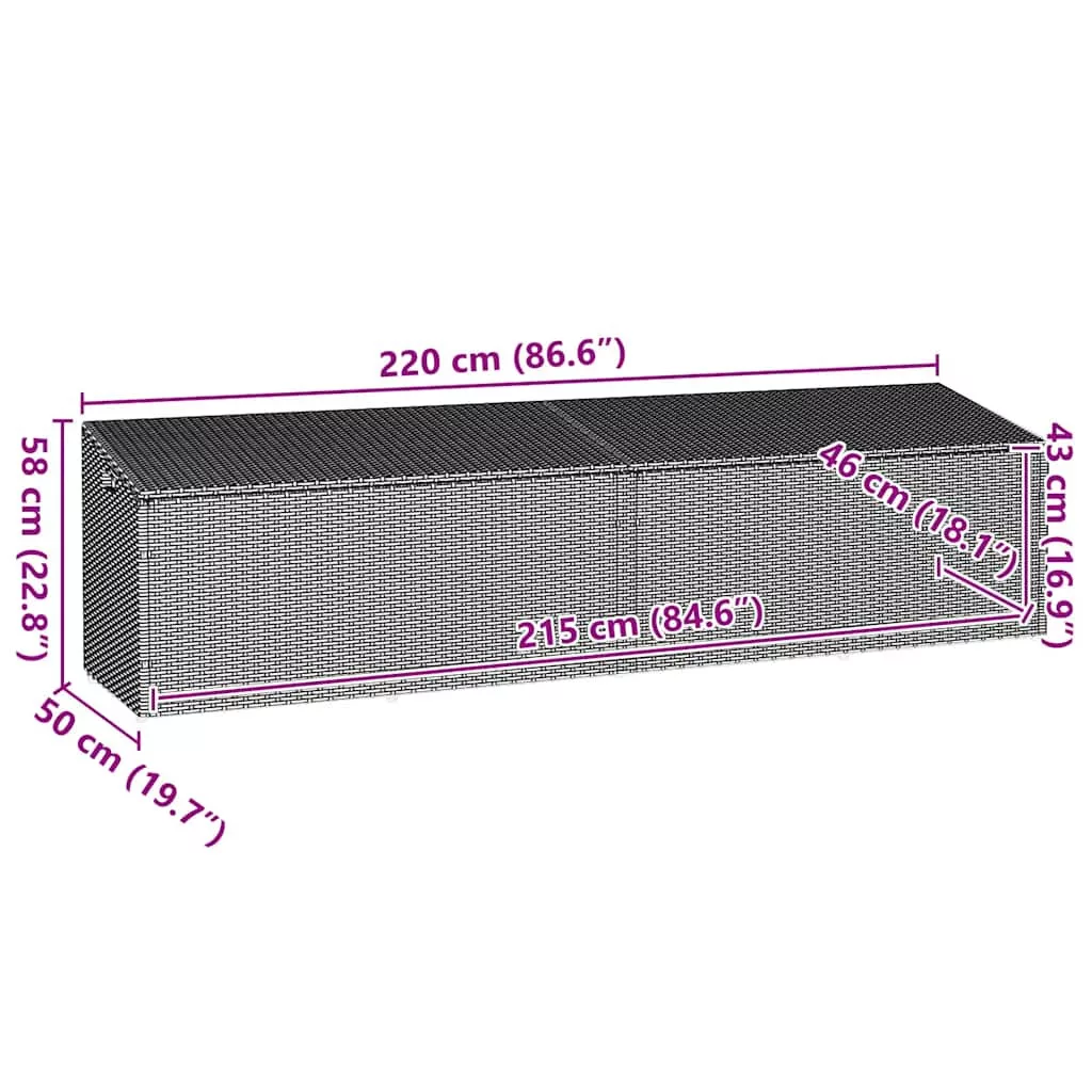 világosszürke polyrattan kerti tárolóláda 220x50x58 cm