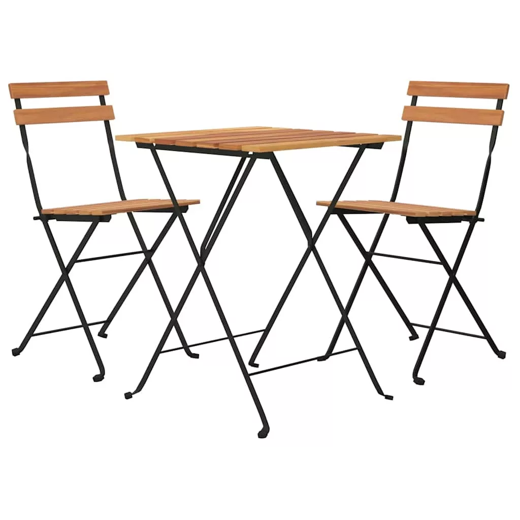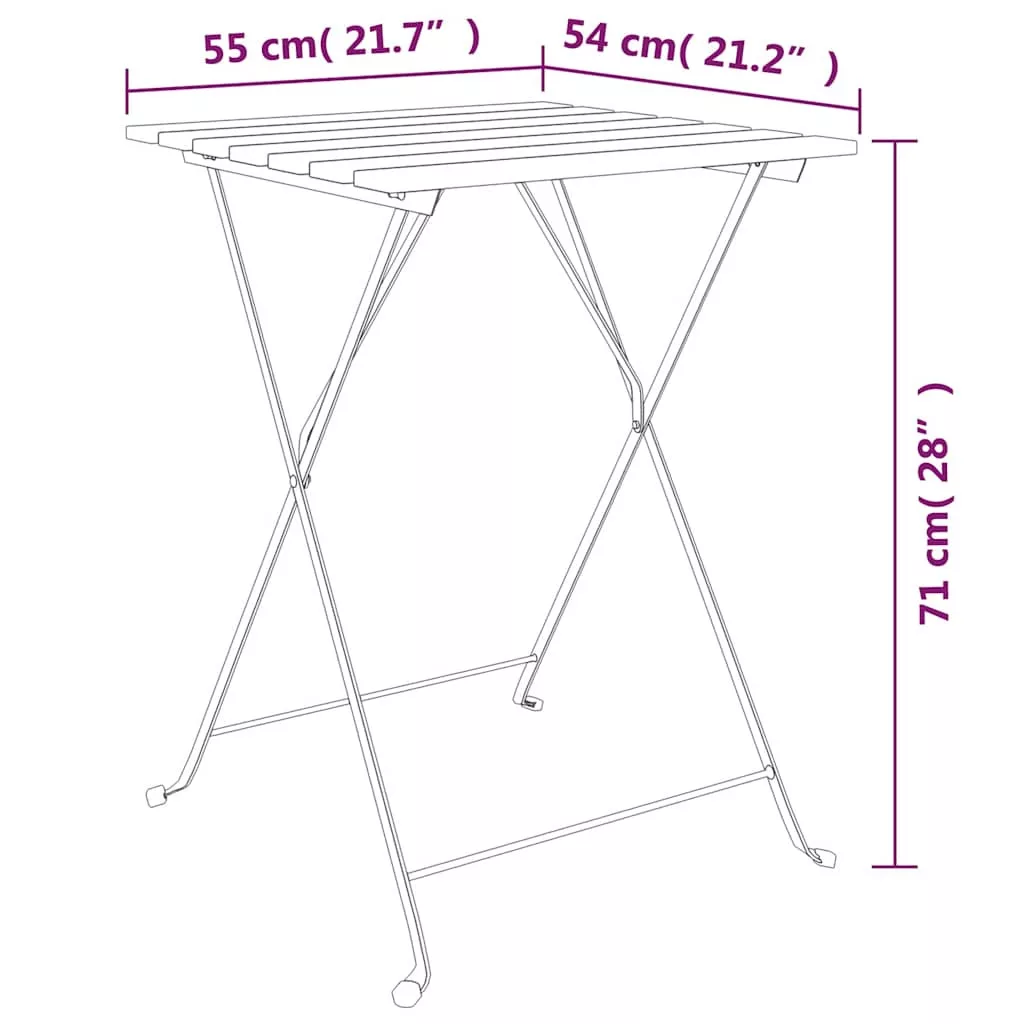 Ez az összecsukható, 3 részes bisztrószett kitűnő választás a kertben, erkélyen vagy udvaron történő étkezéshez vagy pihenéshez. Tartós anyag: A tömör tíkfa egy gyönyörű, természetes anyag. A fa természetesen, illetve kemencében volt szárítva, majd finomra lett csiszolva az elegáns megjelenés érdekében. A tíkfa rendkívüli erejéről és időjárás-állóságáról ismert.Stabil váz: A porszórt acél váz erős szerkezetet és stabilitást biztosít.Összecsukható kialakítás: Az asztal és a székek használaton kívül könnyen összecsukhatóak a könnyű tárolás és szállítás érdekében. Megjegyzés:Kerti bútora élettartamának meghosszabbítása érdekében javasoljuk, hogy védje vízálló takaróval.Az egyszerű összeszerelés érdekében minden termékhez mellékelünk összeszerelési útmutatót. Maximum 110 kg ülésenként.
